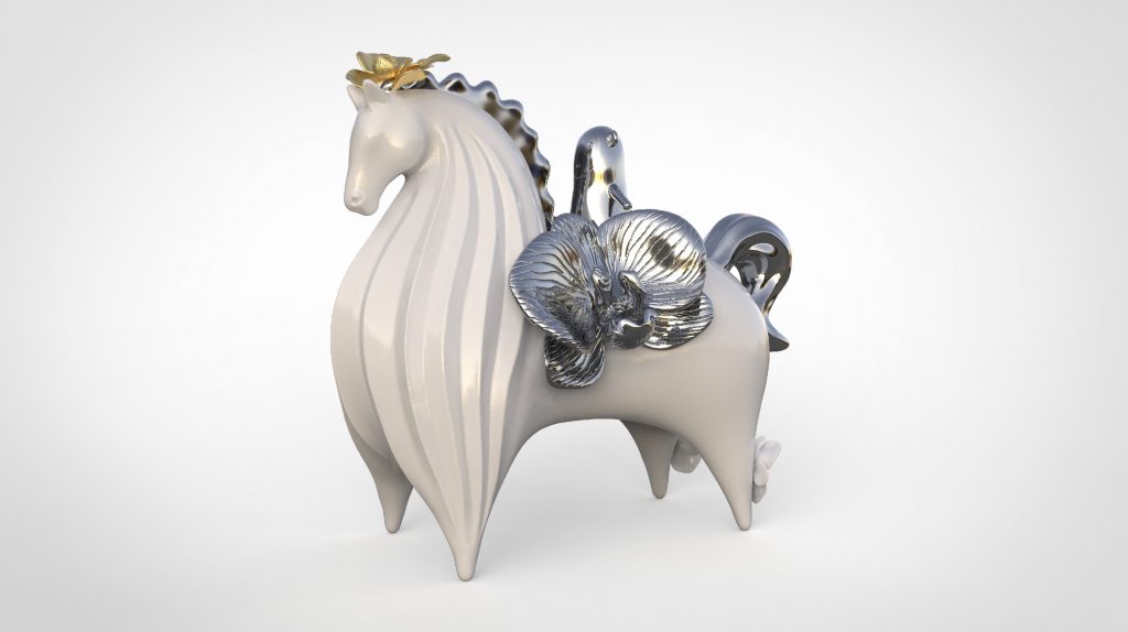 一匹身披彩虹紋路的小馬,在城市街頭吸引無數目光,像從虛擬世界跑出來的角色,像是潮流的象徵,充滿數位的靈魂,穿梭時空的角色。