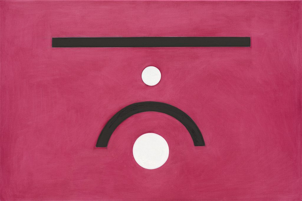 霍剛的幾何抽象並非純粹的形式遊戲,實則源自中華文化底蘊的體現。尤其是中國書法的線條韻律,轉化成畫面的為靈動筆觸與節奏,對他影響甚鉅。他擅長以「點」作為畫面的核心元素,透過其位置與大小的變化,搭配色塊形成的結構韻律,營造出音樂般的節奏感,呼應康丁斯基所主張的「抽象繪畫即視覺音樂」的理念,但霍剛更進一步地將這種秩序注入視覺的節奏,譜出生命的律動感。霍剛的畫面從看似隨機的筆觸中提煉出簡練的幾何符號,彷彿在無序中尋覓宇宙的規律,這正是他對「精神空間」的探索。他的幾何抽象不僅是視覺的構成,也映照出自內在湧現的宇宙觀。