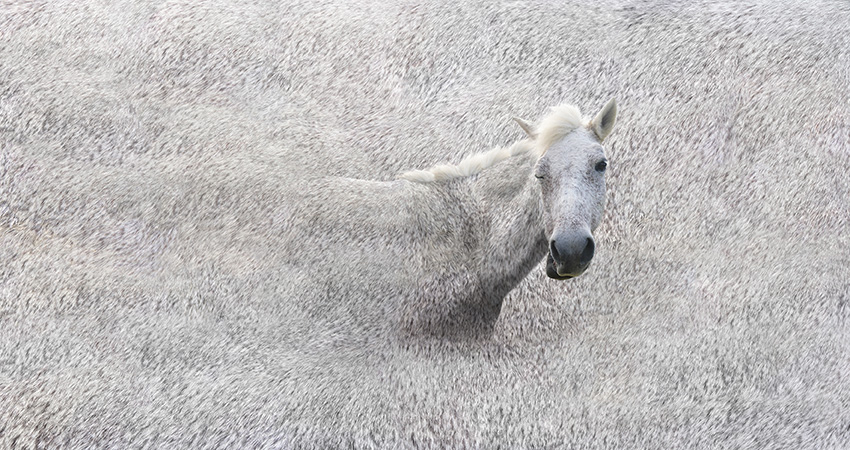 《編碼者 – 隱身術的內心戲》如同一幕心底的風景,畫面中的馬從頸部以下與軀體連接的部份開始,整個毛皮鋪展漫延開來,盈滿整個畫面。主角與背景的區別開始消失,「前景/背景」、「主角/敘事脈絡」這些層次上的差異混融,就如同莫比烏斯環(Möbius strip),如此的表層結構不只是一個空間感的隱喻,也呈顯出了數位網絡時代敘事體驗的基調。