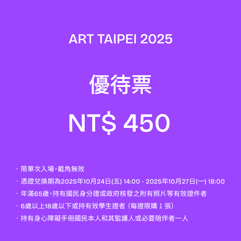 - 未滿6歲之孩童可於公眾展期間免費入場。