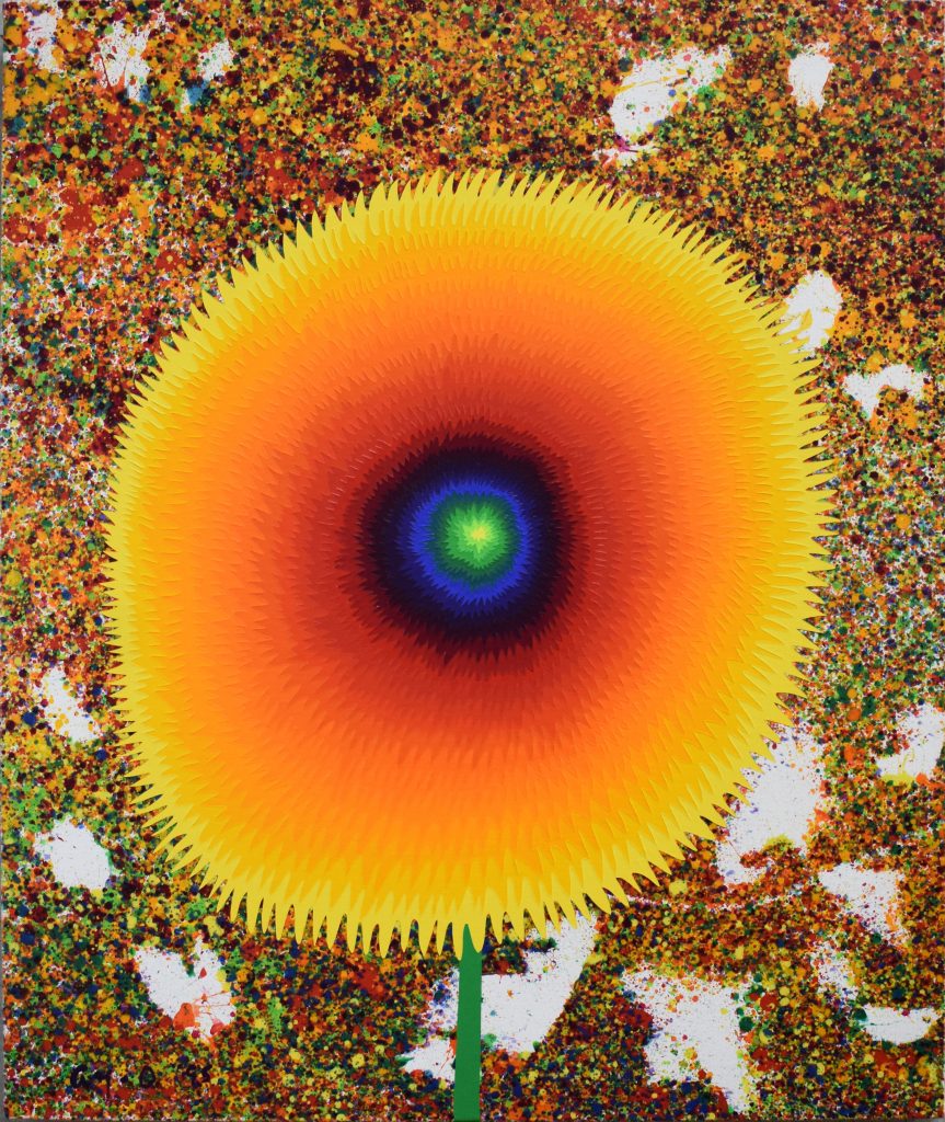 Born 1931 in Ibaraki Prefecture, Ay-O’s real name is Takao Iijima. He graduated from the Tokyo University of Education in 1954. Still in university in 1953, Ay-O participated in the Demokrato Artist Association established by fellow artist Ei-Q. He co-founded the art group Jitsuzaisha (“The Realists”) with Masuo Ikeda. Since his first visit to the US in 1958 he moved back and forth between America and Japan, and since 1962 actively took part in the avant-garde movement Fluxus. In 1971, he won the prize of the São Paulo Biennial, reflecting his international recognition.